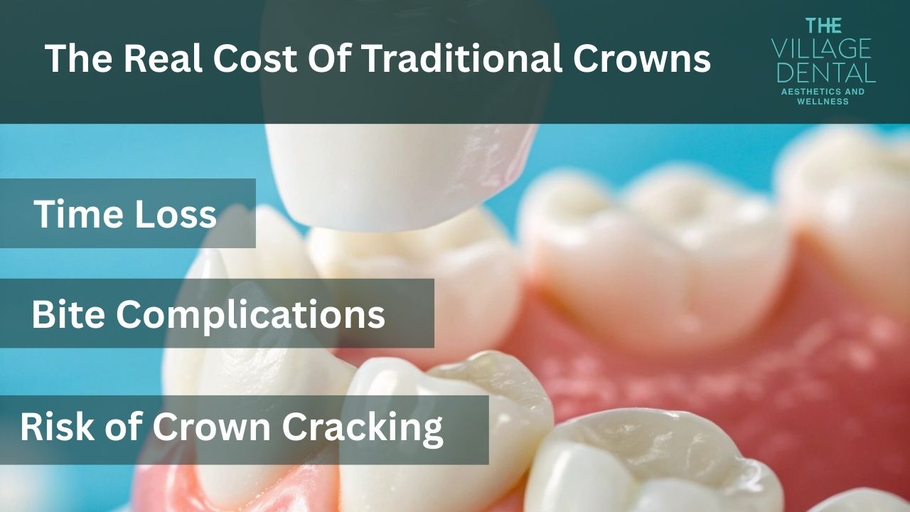 Your overall health benefits. Village Dental understands that your teeth aren't isolated structures. They're part of a complex system affecting everything from nutrition to systemic inflammation. A properly placed same day crown that seals and protects your tooth immediately reduces the risk of infection spreading beyond your mouth.